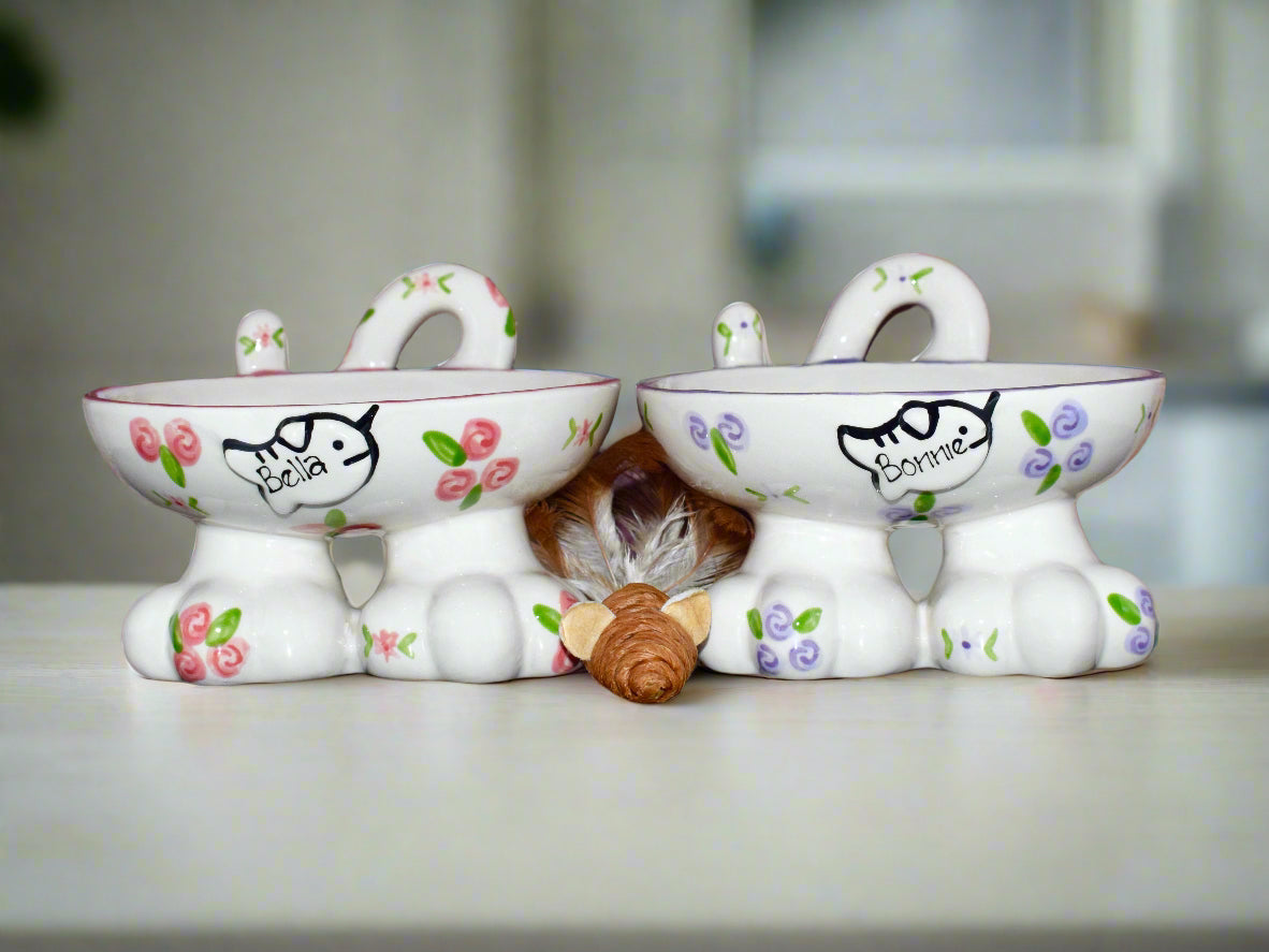 🎨 Elevated Cat Bowl – Custom Coloured Roses