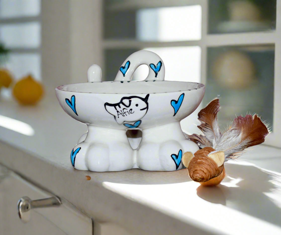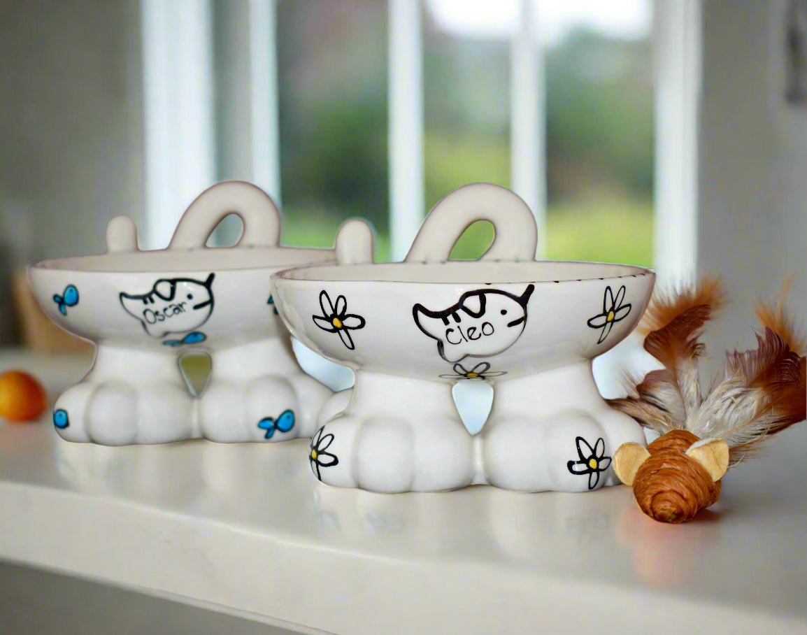🎨 Whimsical Elevated Cat Bowl – Custom Colours & Motifs