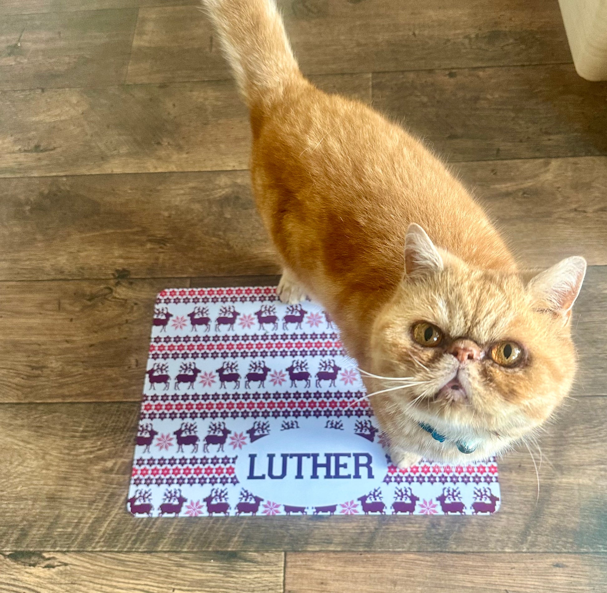 Personalised Pet Bowl Mat Christmas Jumper Design