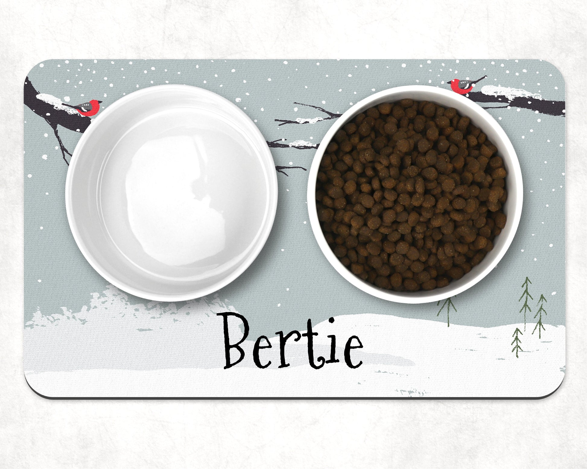 Personalised Pet Bowl Mat Christmas Scene with Robin Design