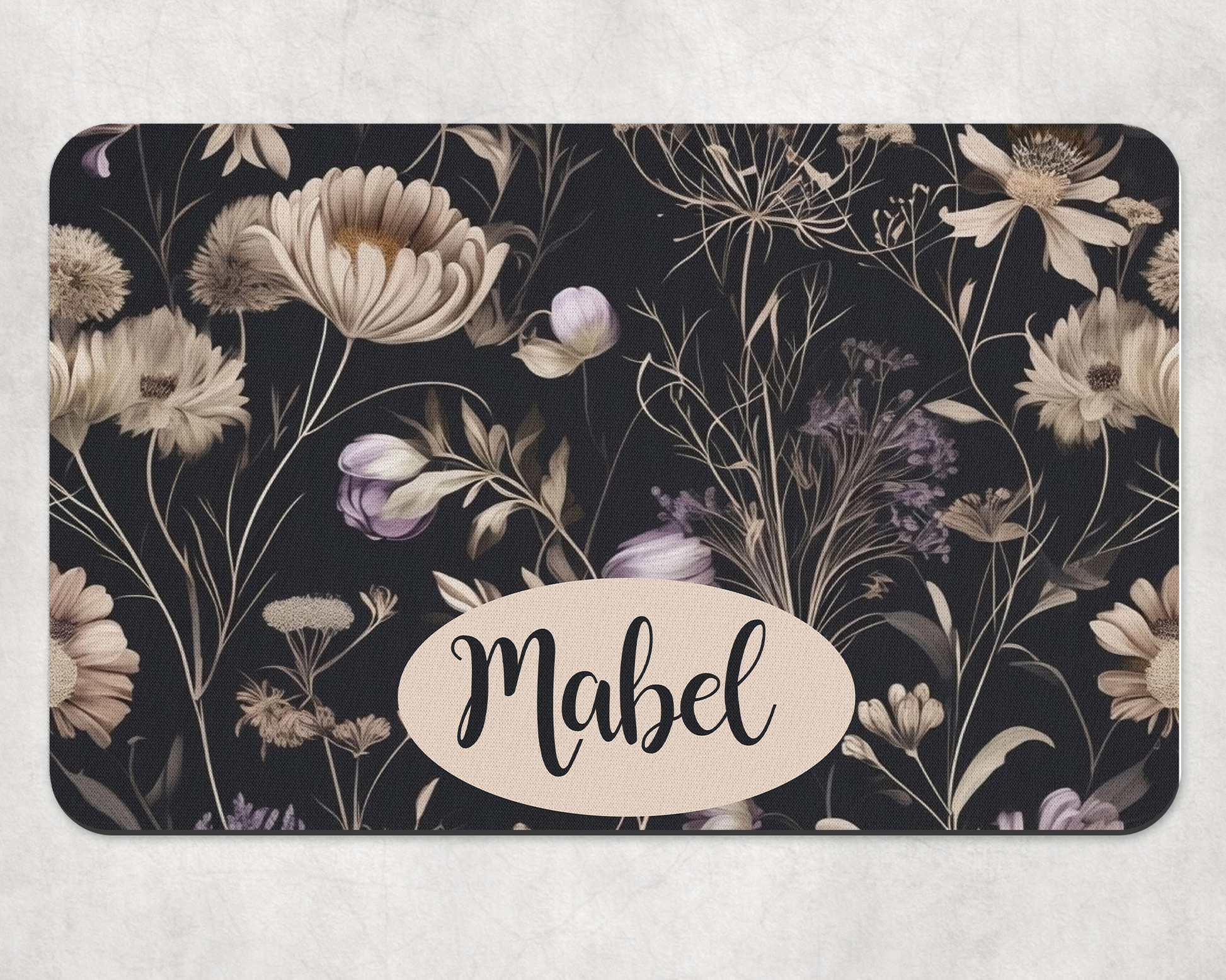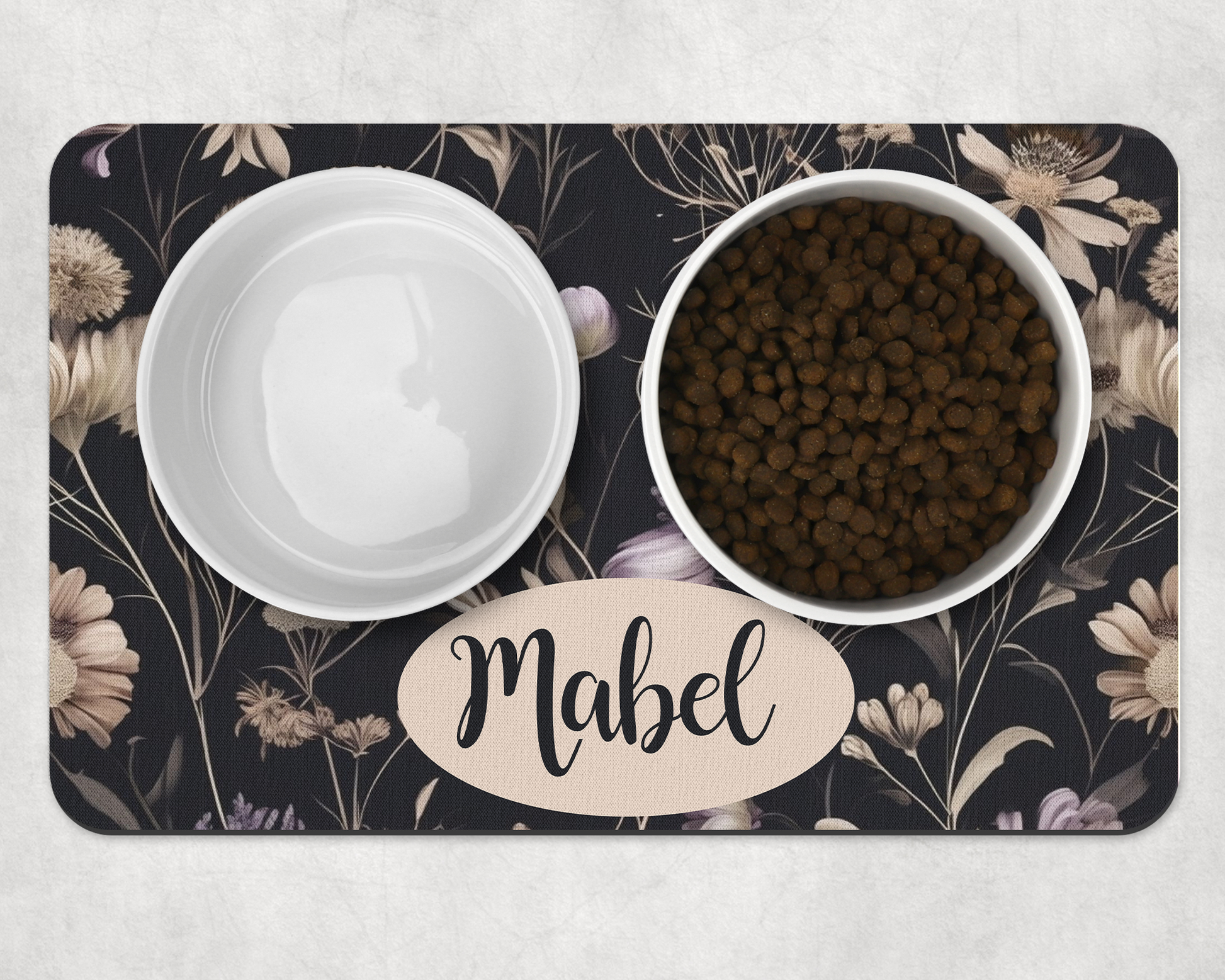 Elevate your pet’s dining experience with our luxury personalised floral pet bowl mat. Featuring soft vintage-inspired botanicals in muted tones set against a deep, elegant backdrop, this timeless design blends sophistication with everyday practicality. Designed for both cats and dogs, it not only keeps your floors clean and protected but also adds a touch of refined charm to mealtimes. Personalise with your pet’s name to create a unique and meaningful piece.
