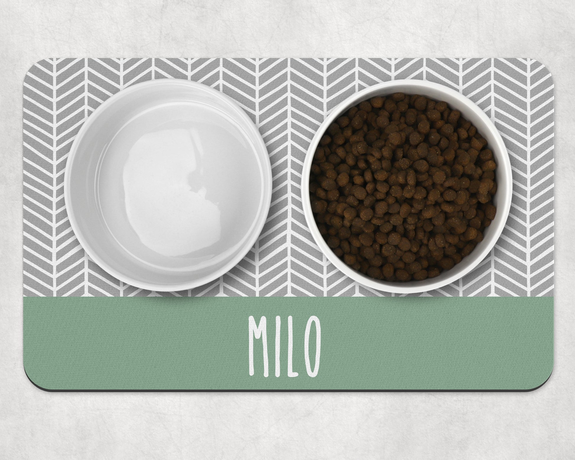 Personalised Pet Bowl Mat Herringbone Stripe Design