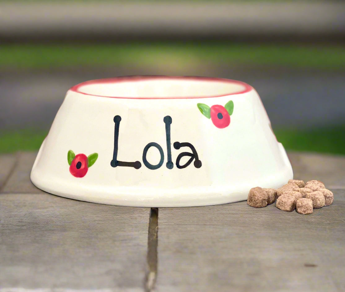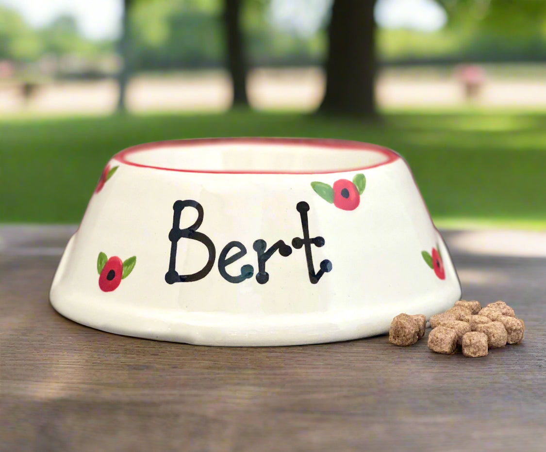 These hand-painted, personalised ceramic bowls are available in three sizes and feature a striking hand-painted poppy design.