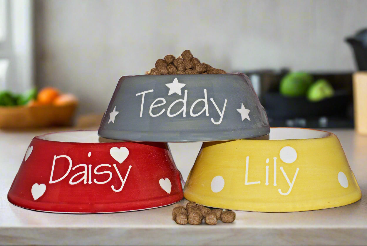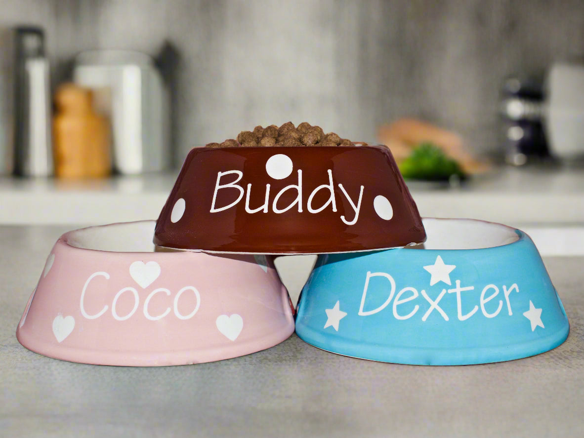 Make mealtimes extra special with these hand-painted, personalised ceramic bowls—available in three sizes and bursting with personality! Choose your favourite colour and pick from playful spots, twinkly stars, or sweet little hearts to create a design that’s as unique as your pet.