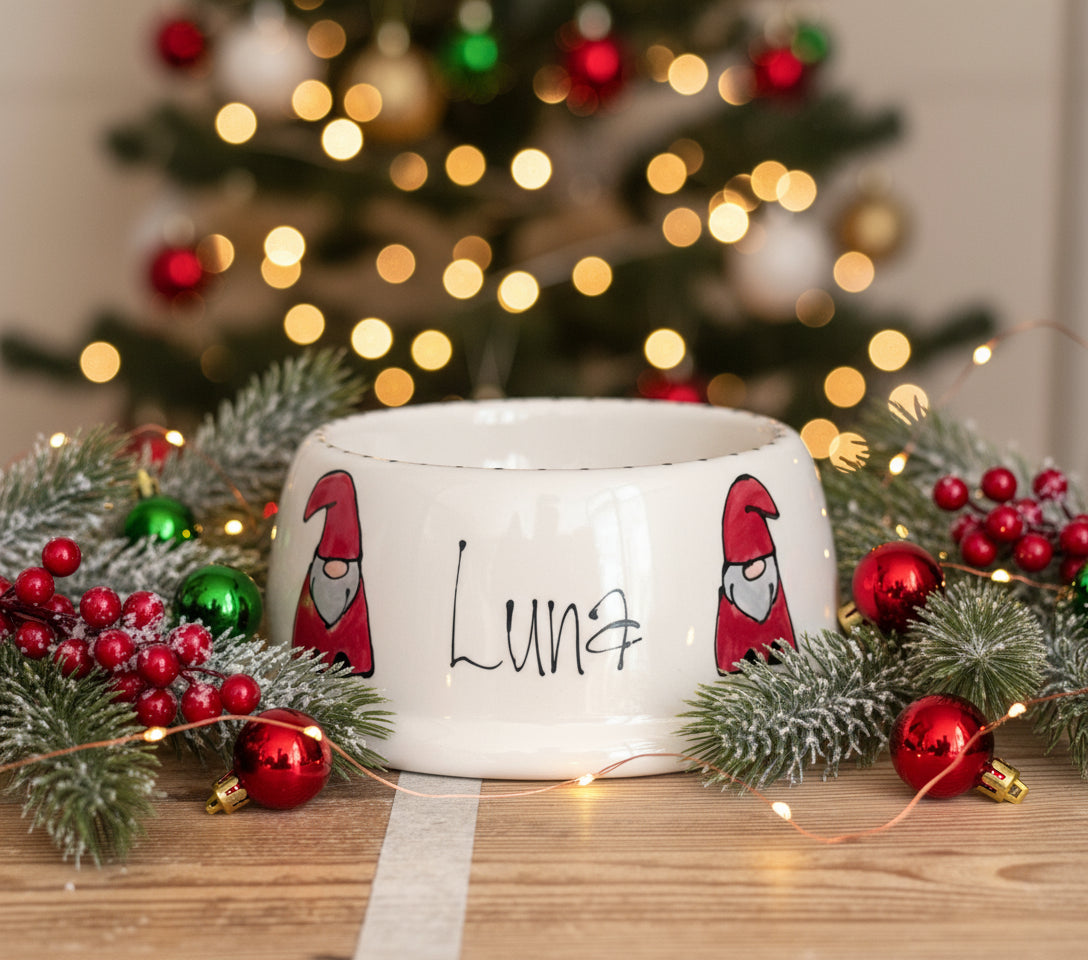 Bring some festive fun to your pet’s mealtime with our hand-painted, personalised ceramic pet bowls - now featuring whimsical Christmas gonks!