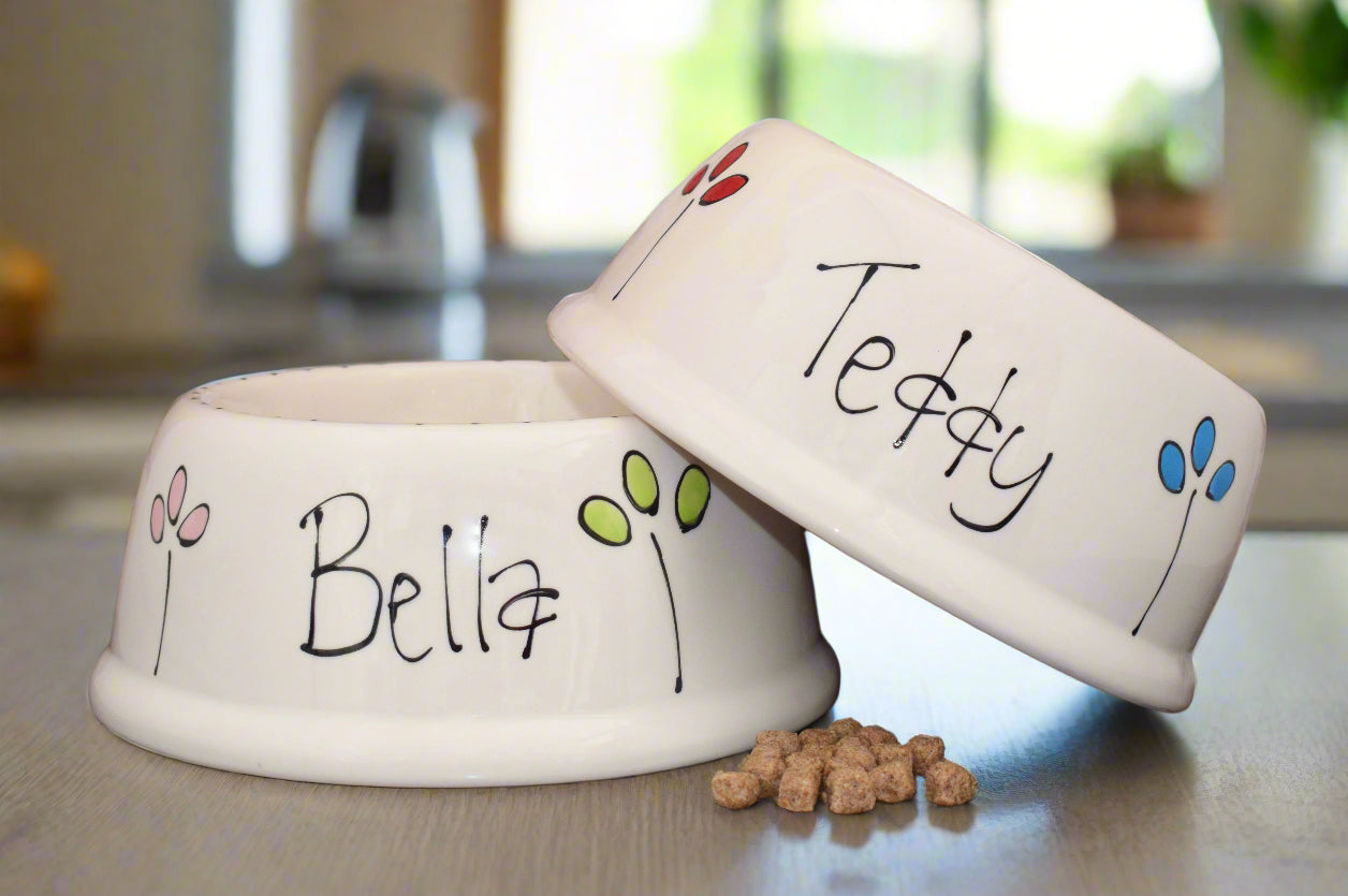 Each bowl is hand painted to order, allowing customers to choose their preferred colours and have their pet’s name elegantly hand-painted on the bowl. Perfect for adding a pop of colour and personality to your pet's feeding area, these bowls combine functionality with a fun, festive design.