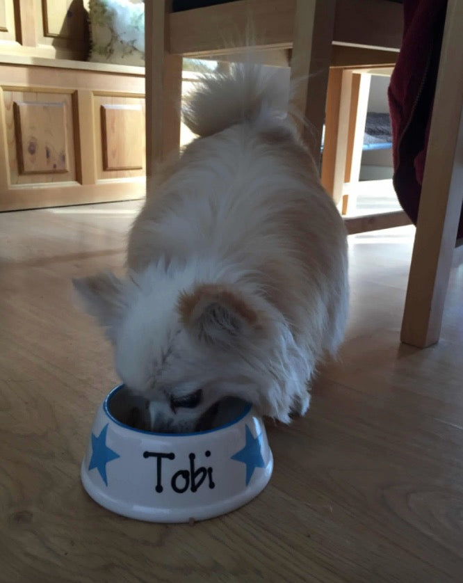 Each bowl is hand painted to order, creating a unique and charming addition to your pet’s mealtime.