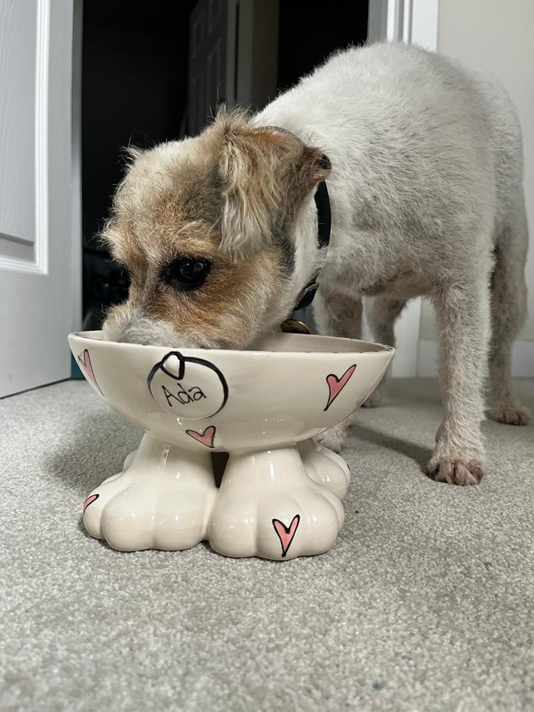 Add a splash of personality to your pup’s mealtime with this whimsical elevated bowl, lovingly hand-painted just for them! Choose your favourite colours and pick from a playful mix of motifs like hearts, bones, paws, flowers, stars, or even fish – whatever suits your furry friend’s vibe!