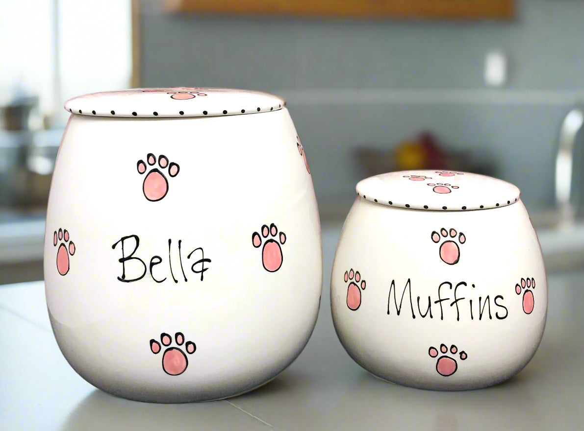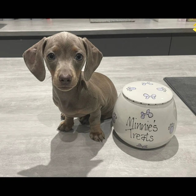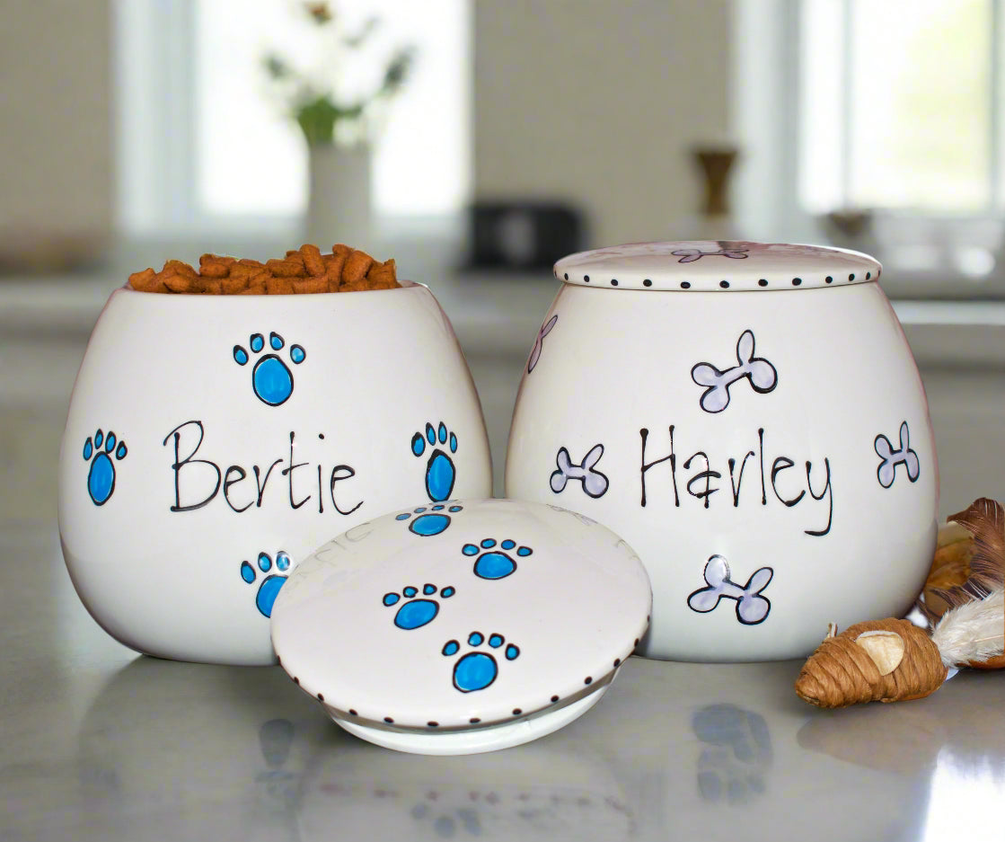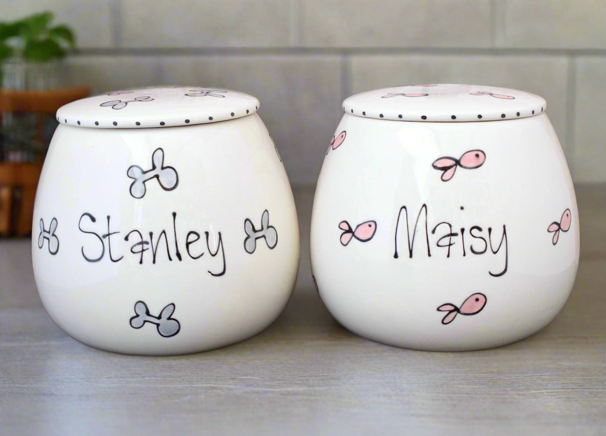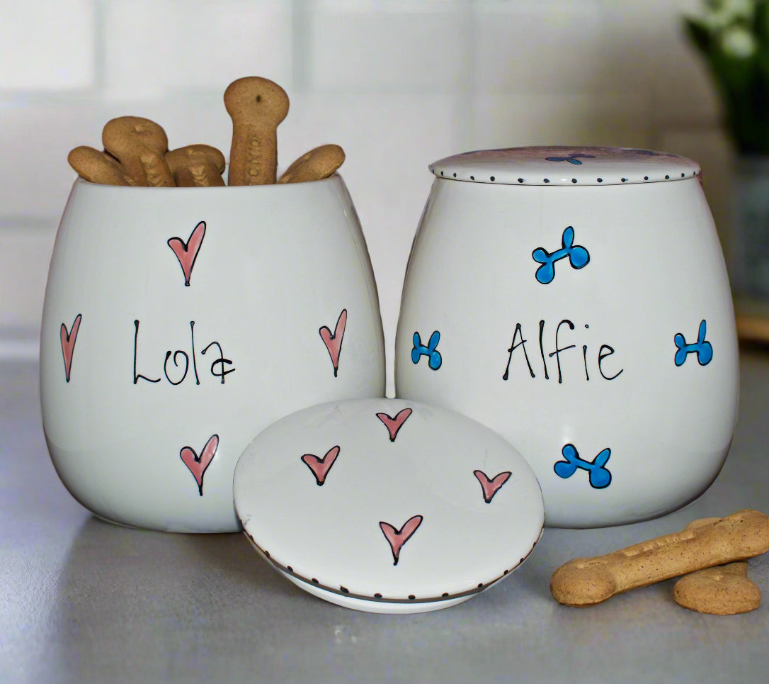 These personalised, hand-painted ceramic treat jars are full of personality and charm—just like your furry friend! Available in two sizes, they're the perfect way to store treats in style: