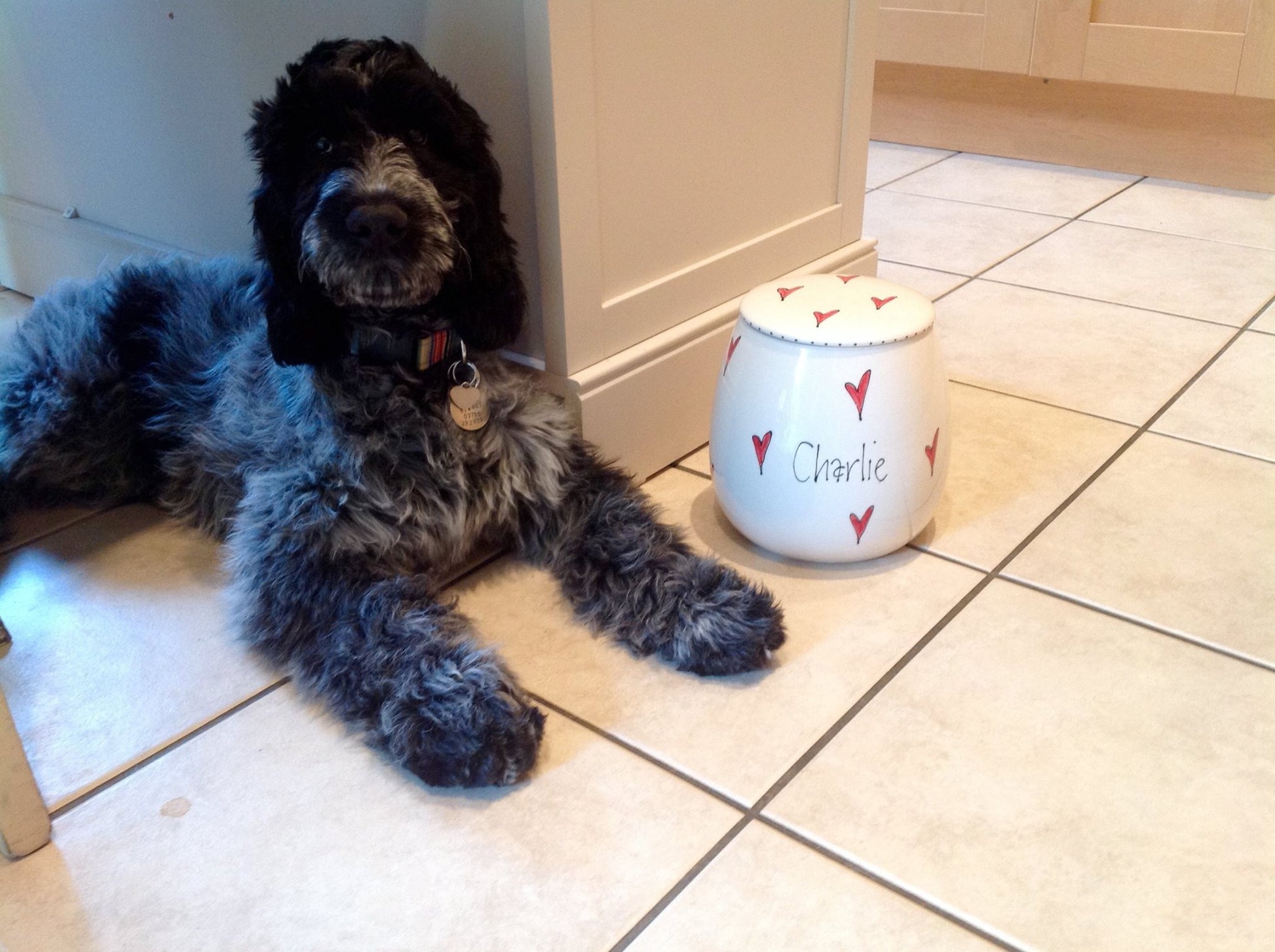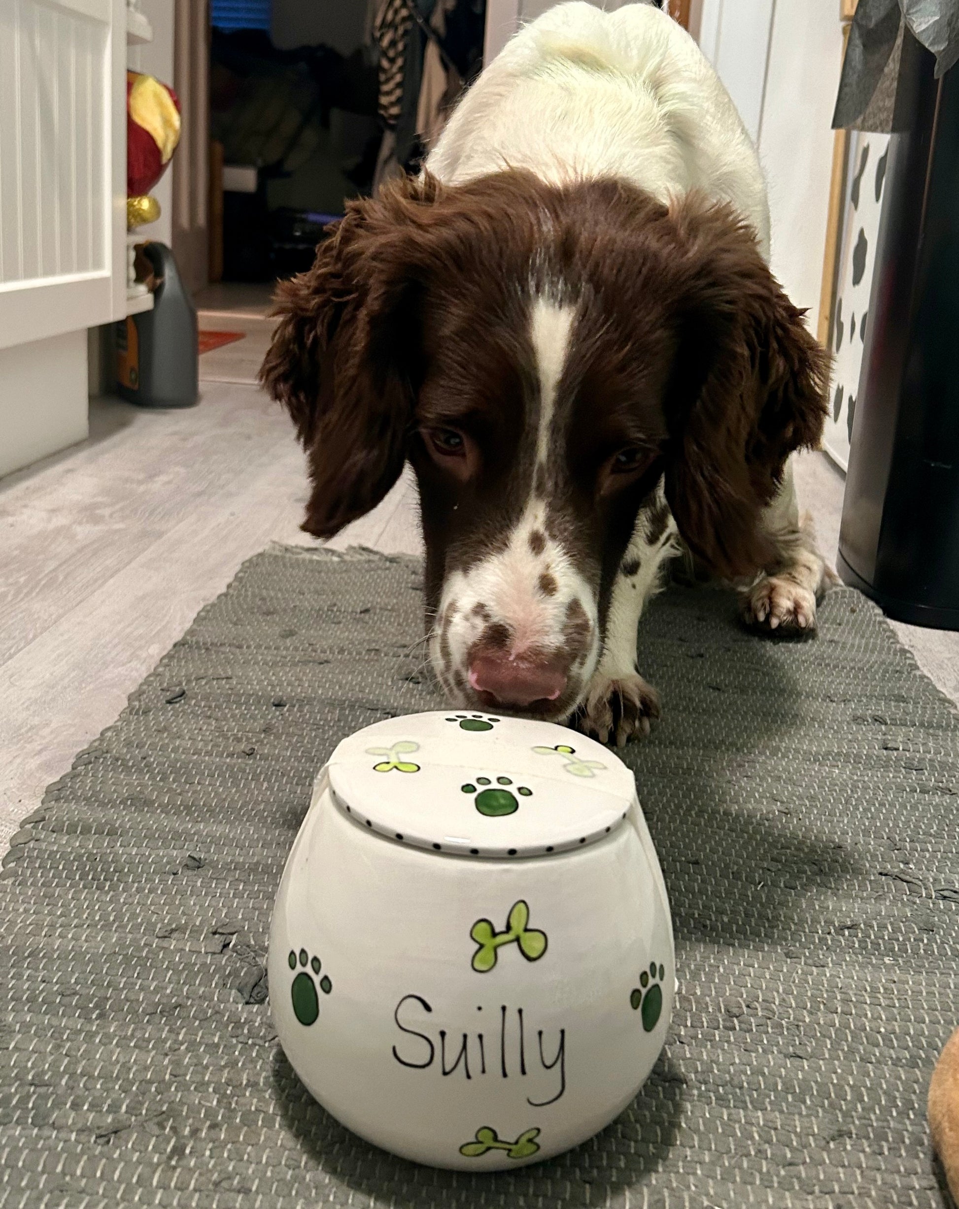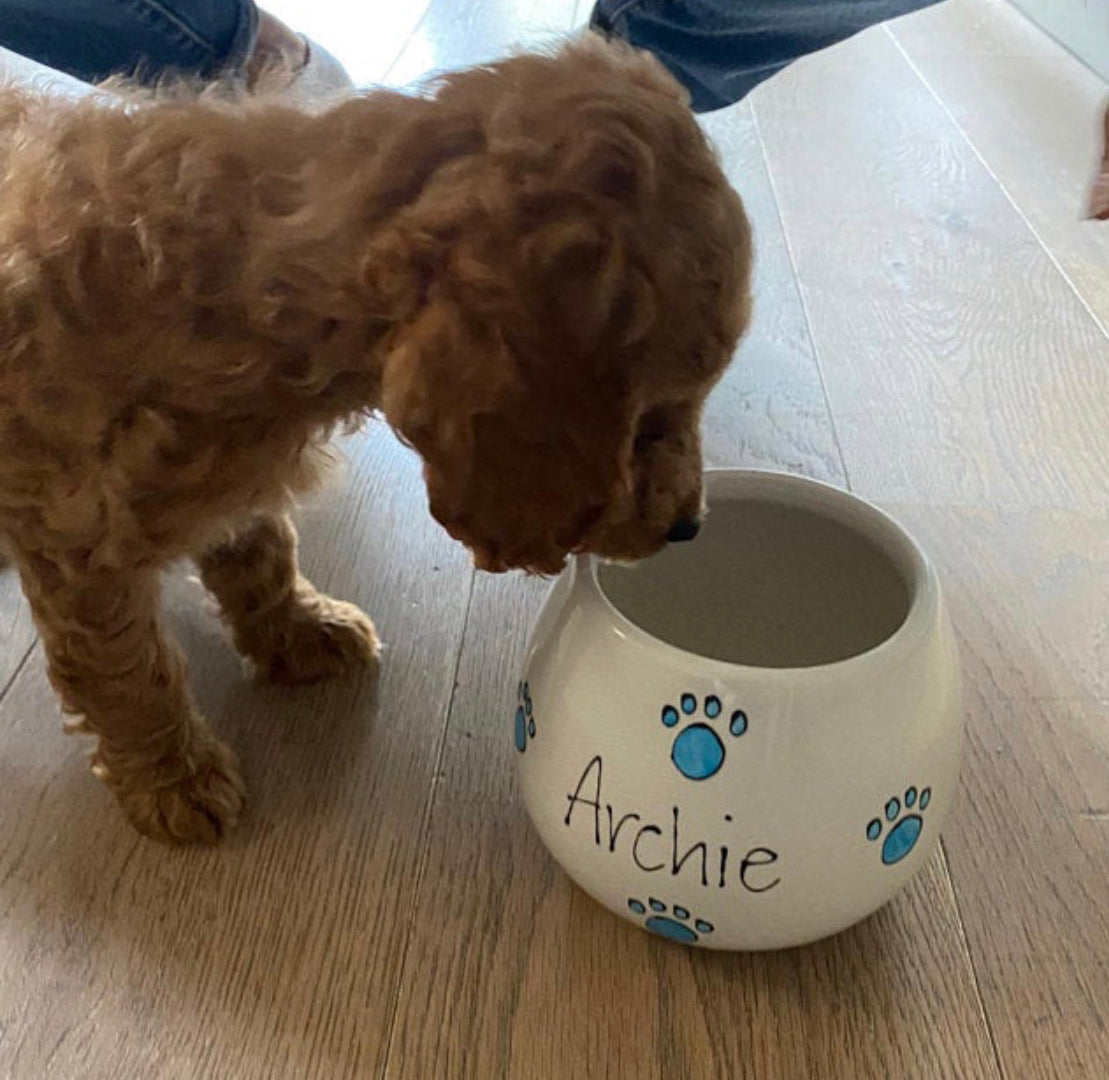These personalised, hand-painted ceramic treat jars are full of personality and charm—just like your furry friend! Available in two sizes, they're the perfect way to store treats in style: