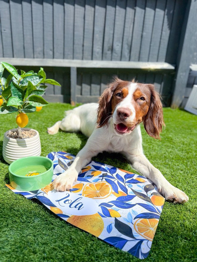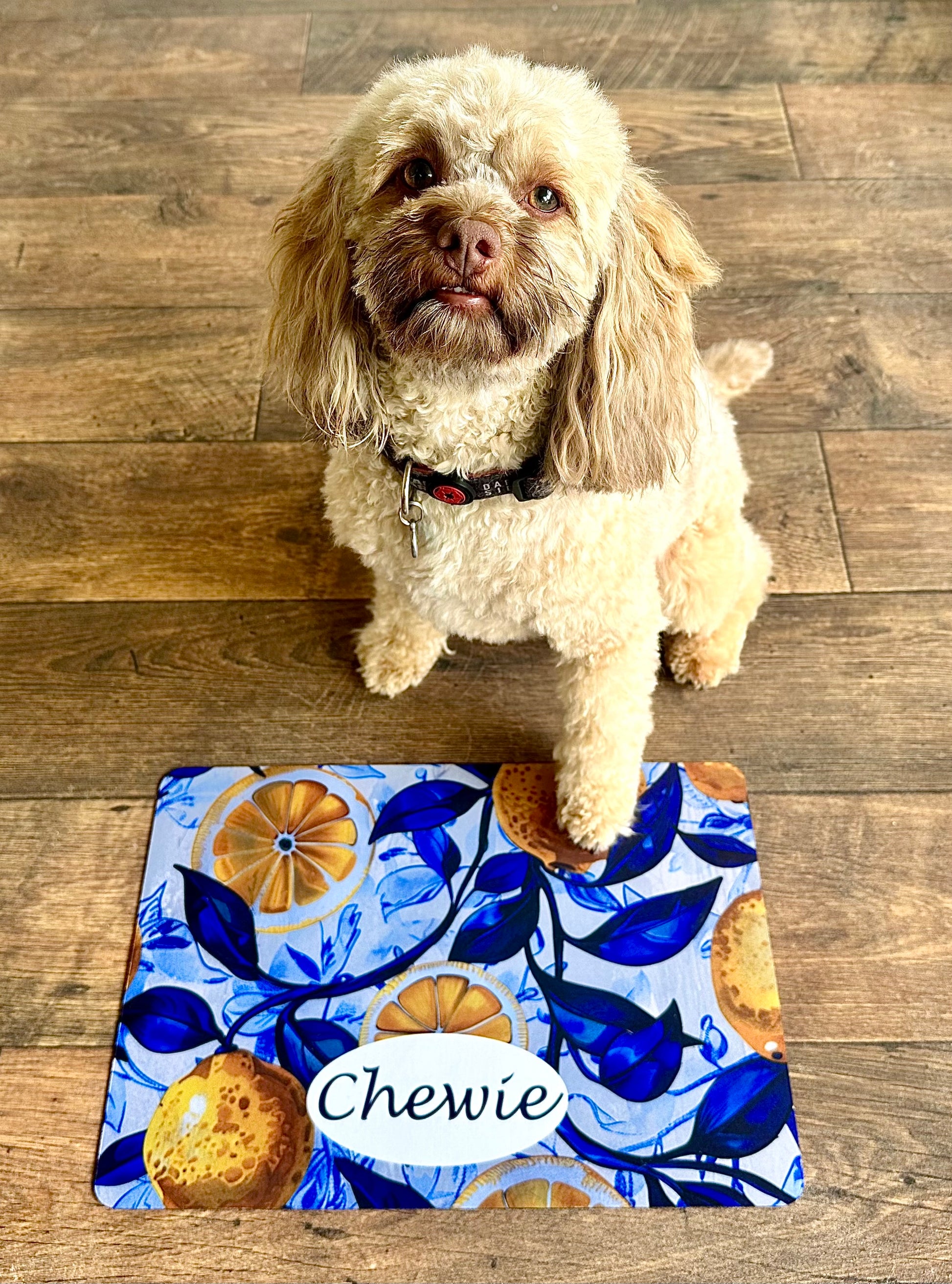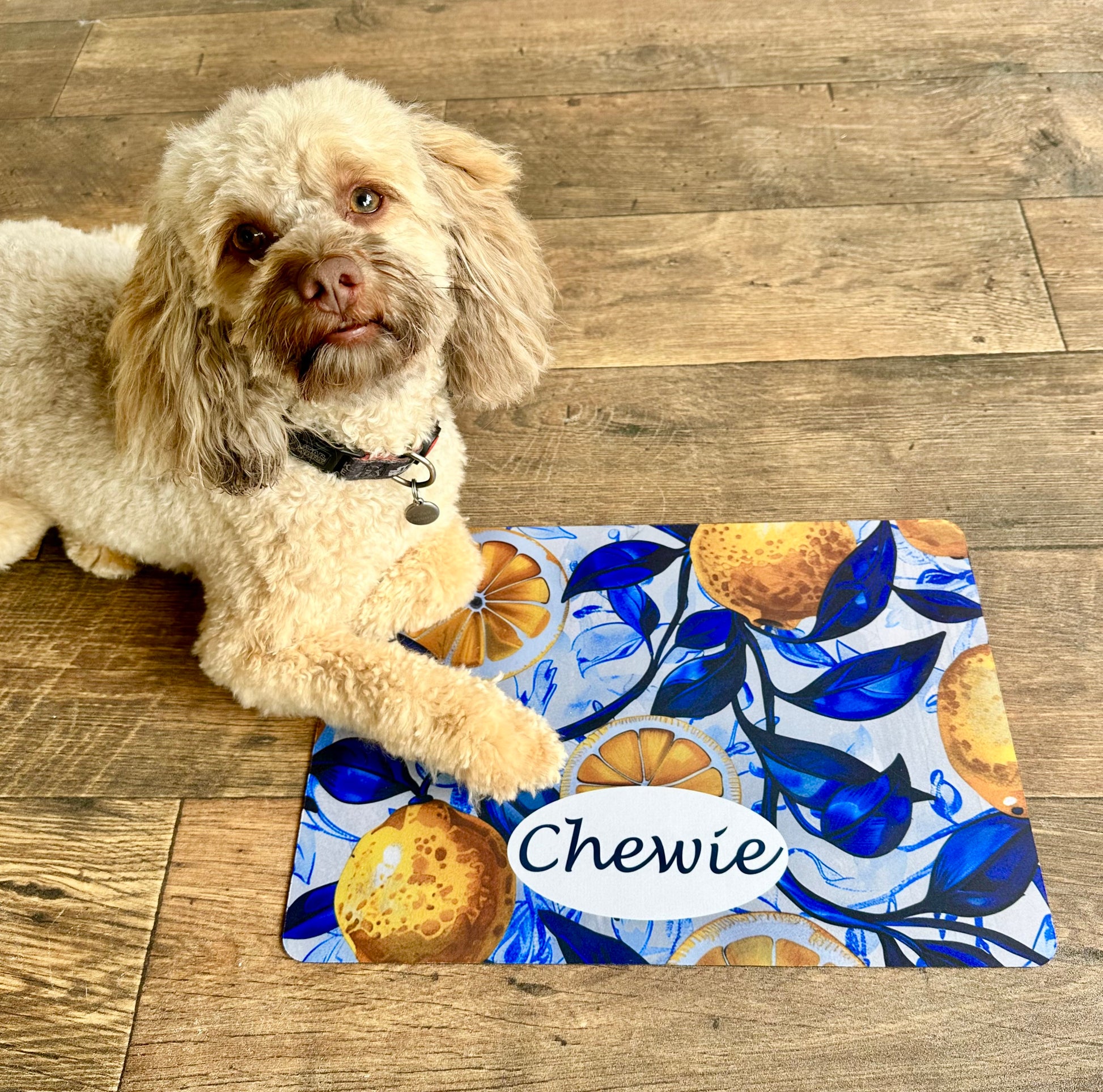 Personalised Pet Bowl Mat Amalfi Coast Inspired