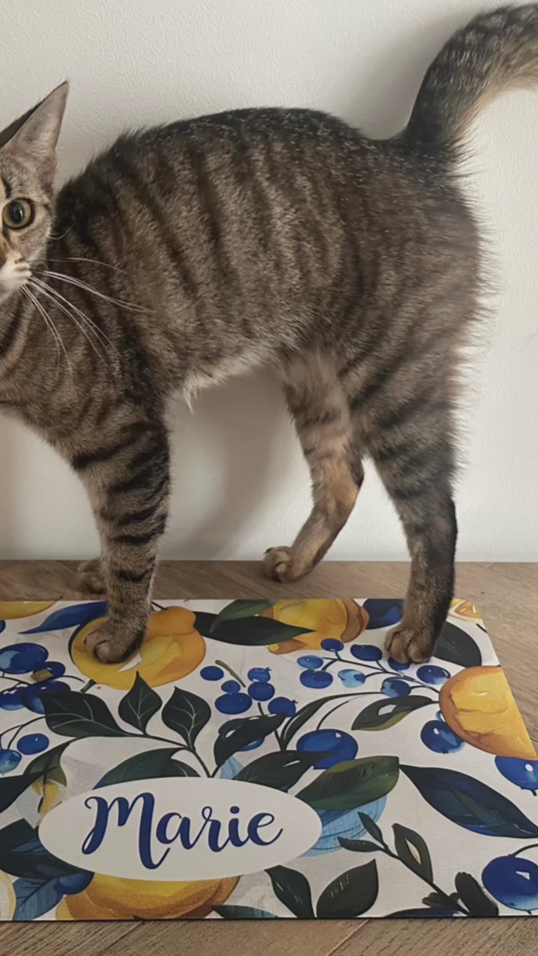 Choose your petโs name in a gorgeous script from the dropdown menu โ beautifully printed among zesty lemons and Mediterranean vibes. ๐โจ Check out the photo examples to pick your favourite font!