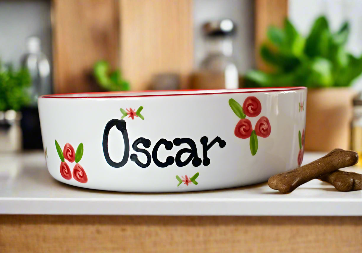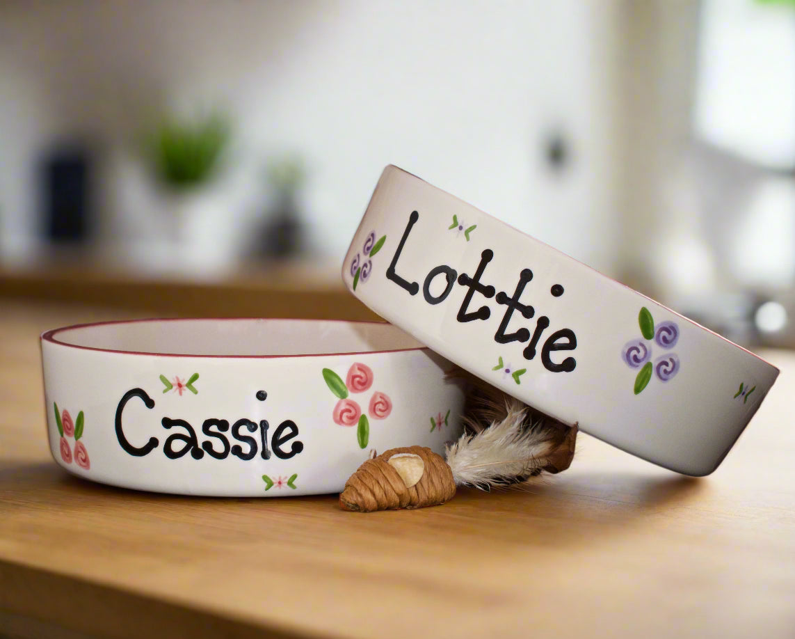 These personalised, hand-painted ceramic bowls are available in three sizes and feature a lovely rose design in your choice of colours. To further customise your bowl, you can select from four different font options for the personalisation.