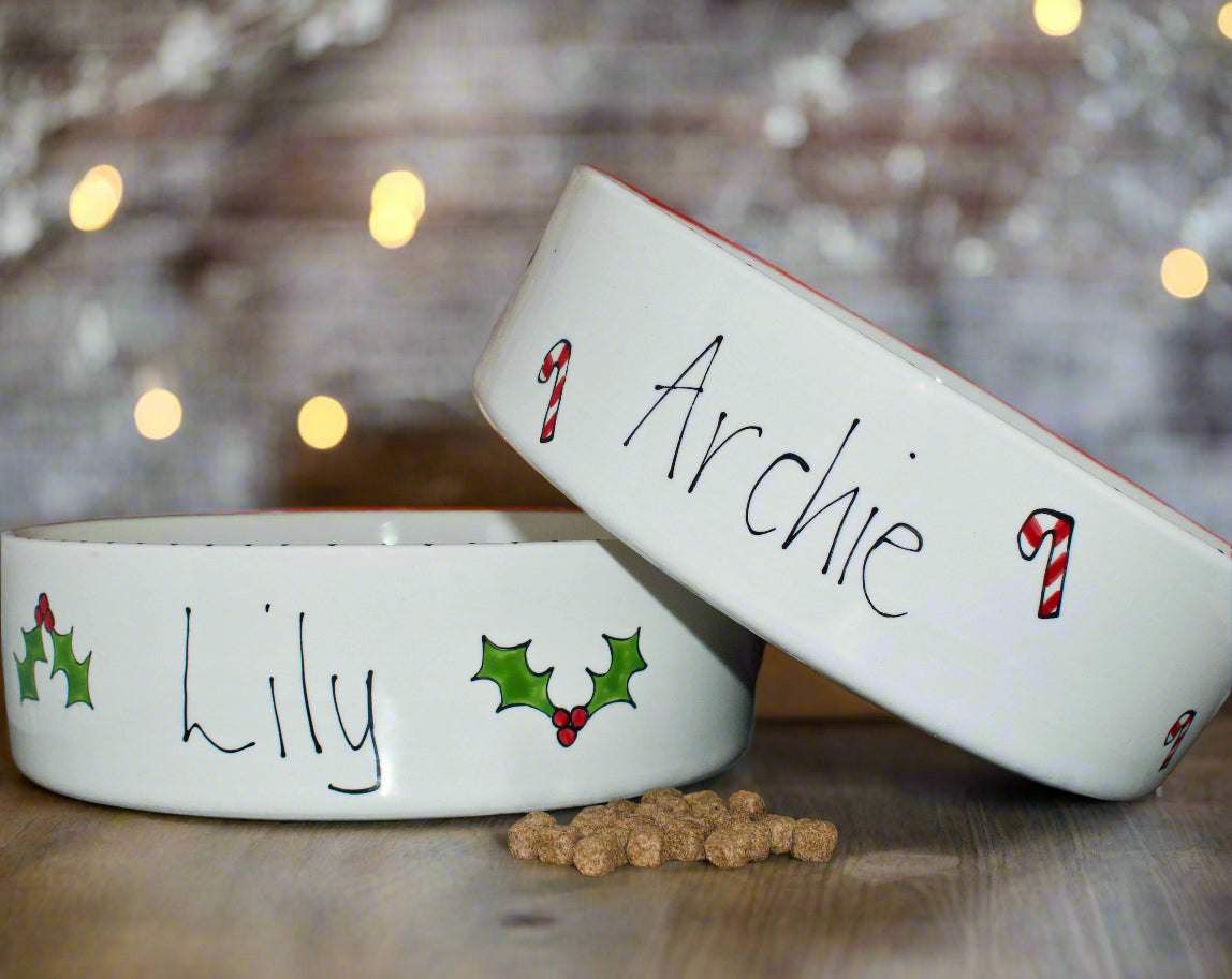 Choose from three joyful designs: classic holly, sweet candy canes, or adorable robins. Each bowl is painted to order, bringing a cosy, festive touch to your pet’s mealtime. Available in three sizes, these bowls are as practical as they are cheerful — the perfect way to add holiday spirit (and a sprinkle of charm) to your furry friend’s feeding area.