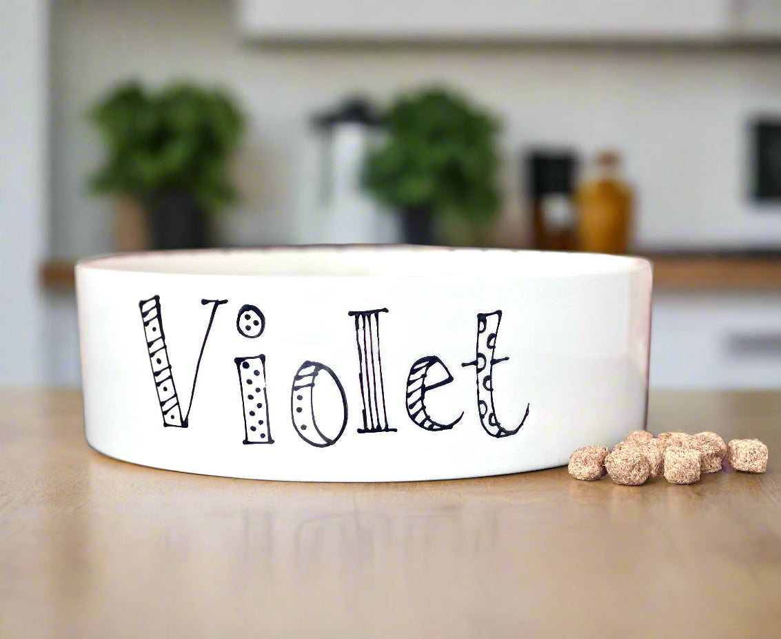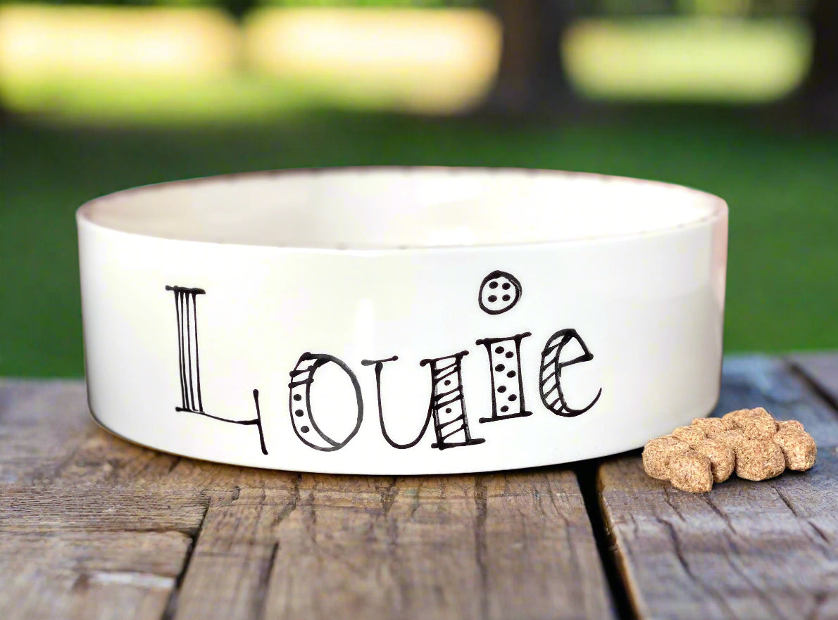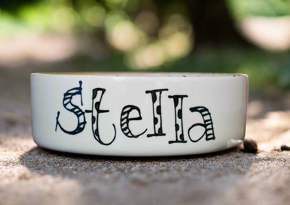 Each bowl is painted to order, with your pet’s name hand-painted in a playful doodle font. Adding a cheerful and unique touch to your pet’s mealtime, these bowls bring both artistry and functionality to your pet’s feeding area.