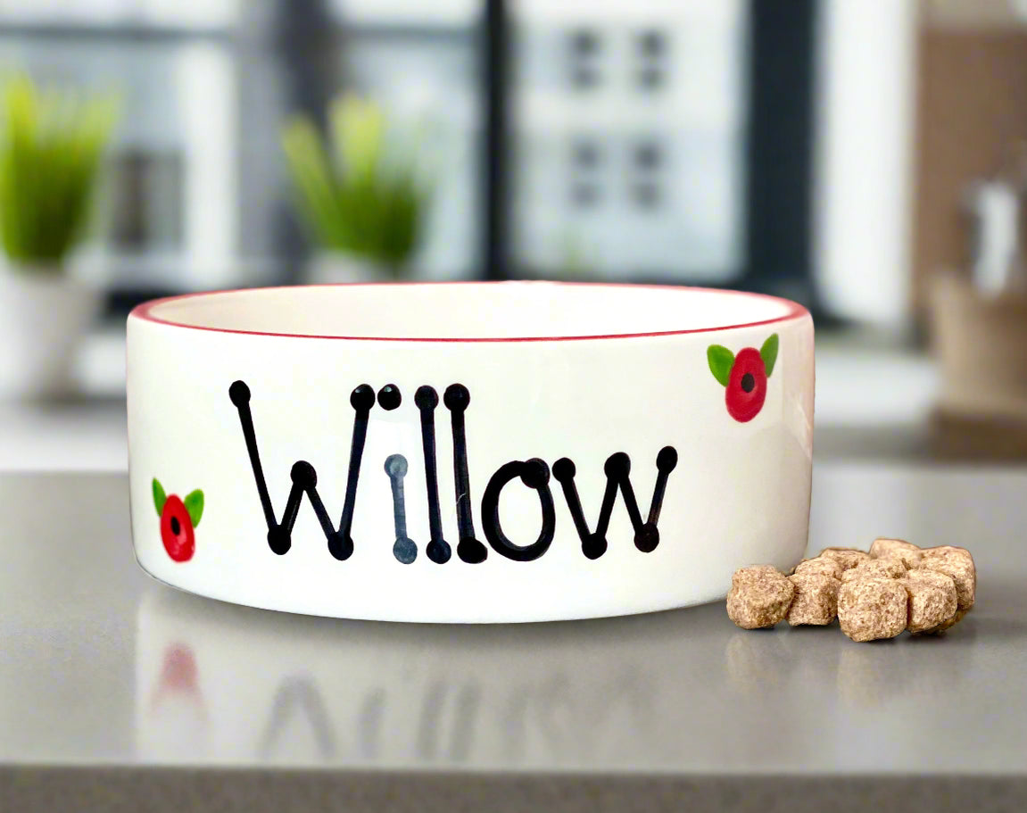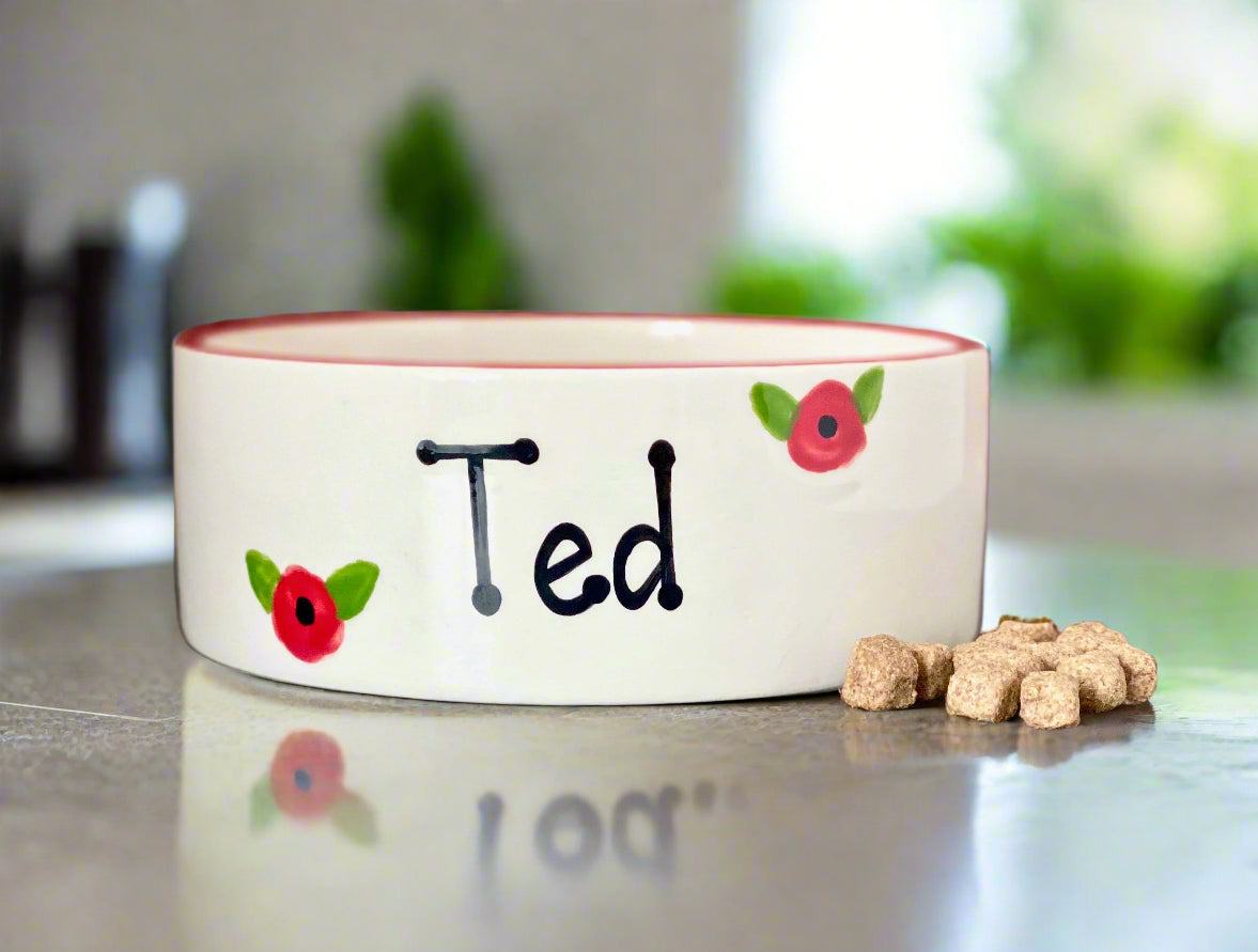 These hand-painted, personalised ceramic bowls are available in three sizes and feature a striking hand-painted poppy design.