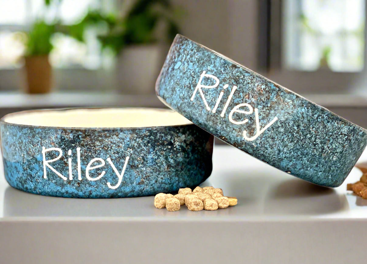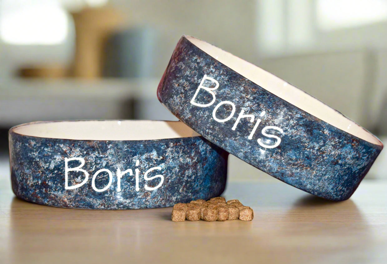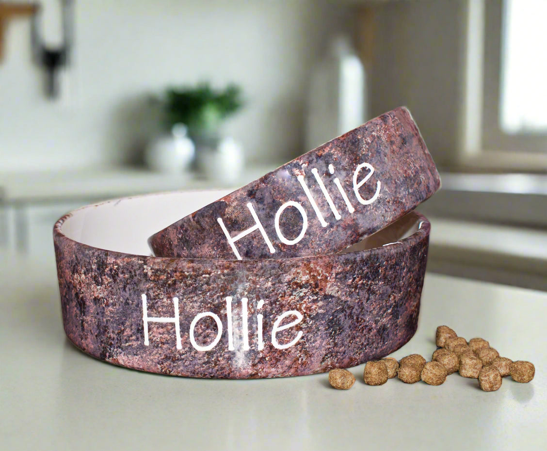 Each set features a unique granite-style effect and is individually painted to order with your pets name, adding a thoughtful personal touch. Both practical and stylish, these bowls are a lovely addition to your home and make a meaningful gift for any pet lover.