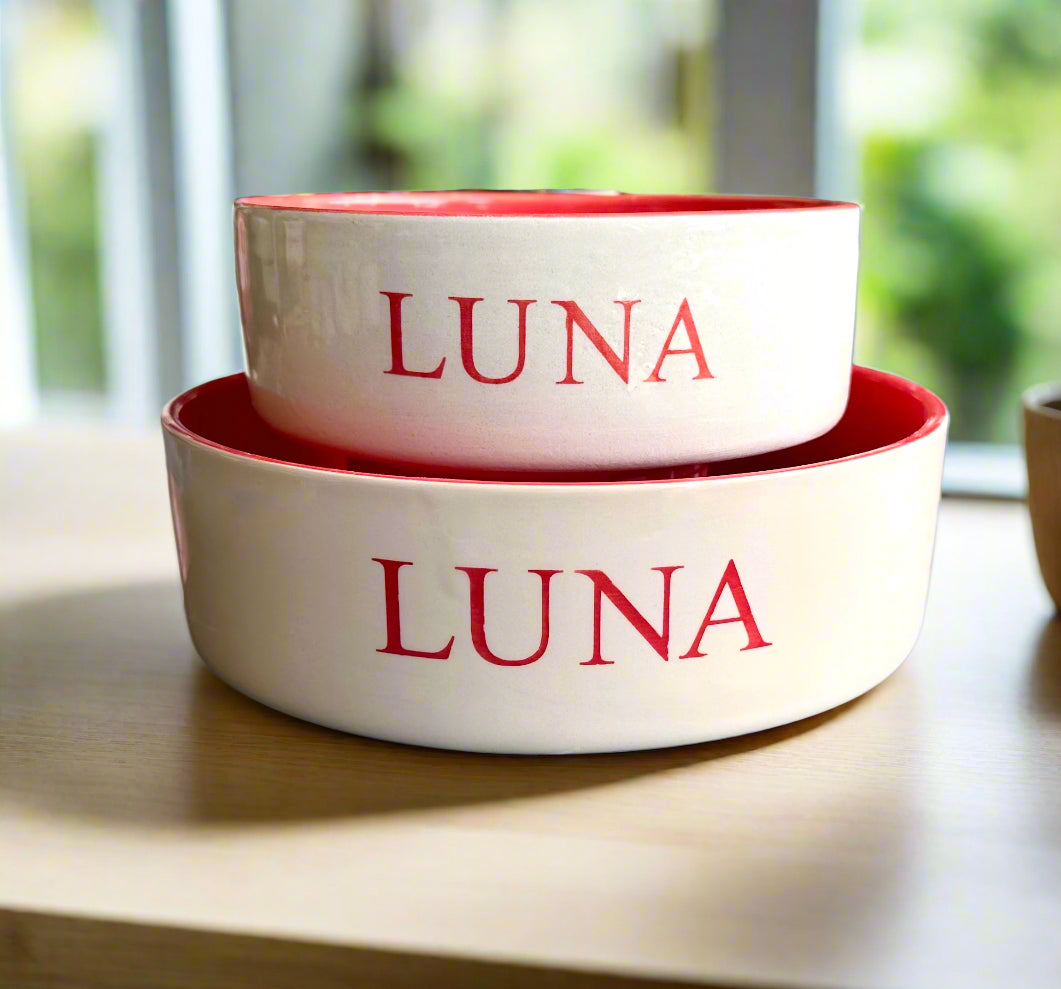 These hand-painted, personalised ceramic bowls come as a set of two and are available in five different size combinations, ranging from two small bowls to two large bowls. Designed to suit pets of all sizes, the smaller sets are ideal for cats or small breed dogs, while the larger sets are perfect for medium to large dogs.