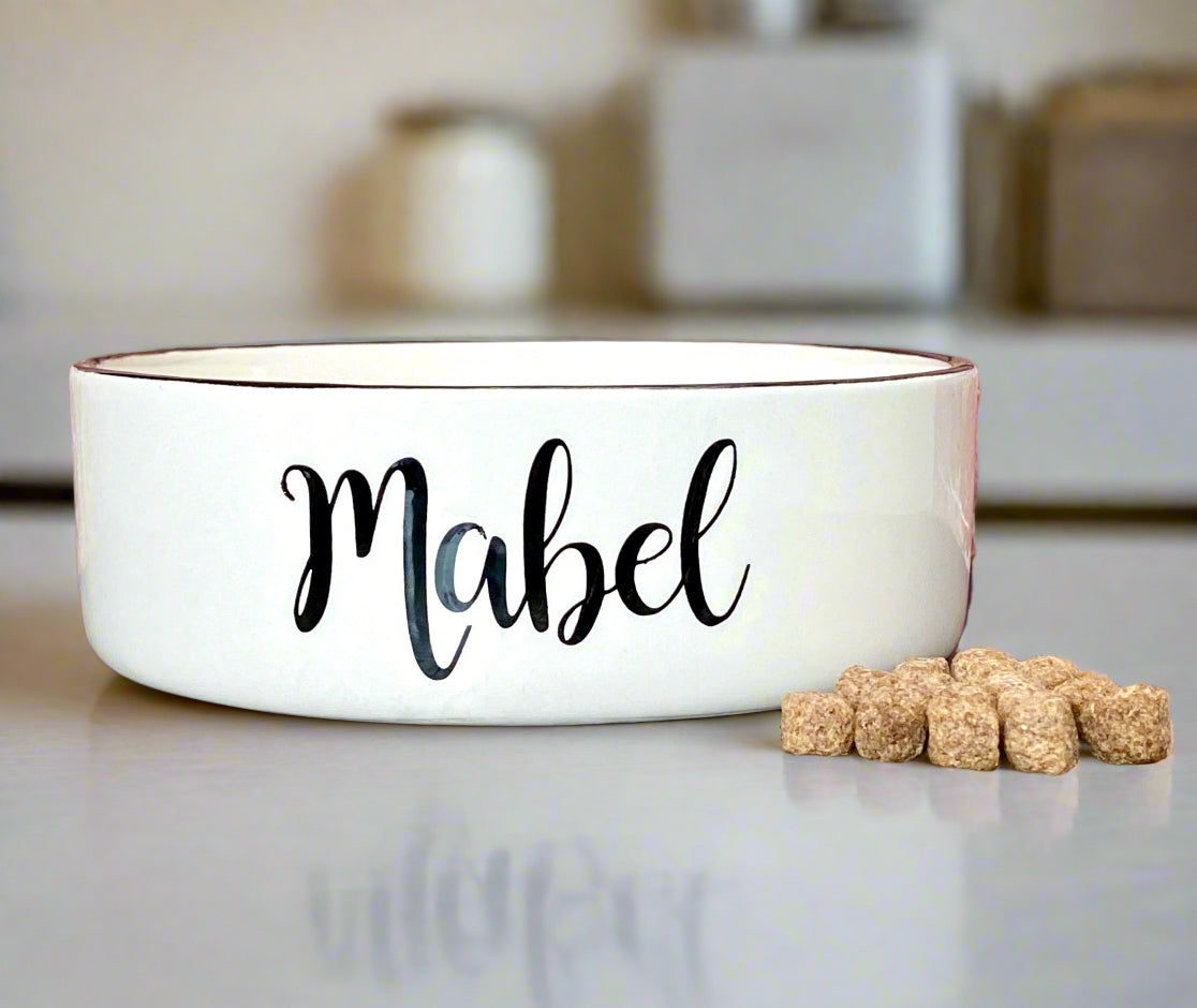 Available in three sizes with your pet’s name elegantly hand-painted in a script, stylish font. Choose a colour to match both the rim and the name, creating a beautiful, coordinated finish. Perfect for adding both artistry and personal flair to your pet’s daily routine.