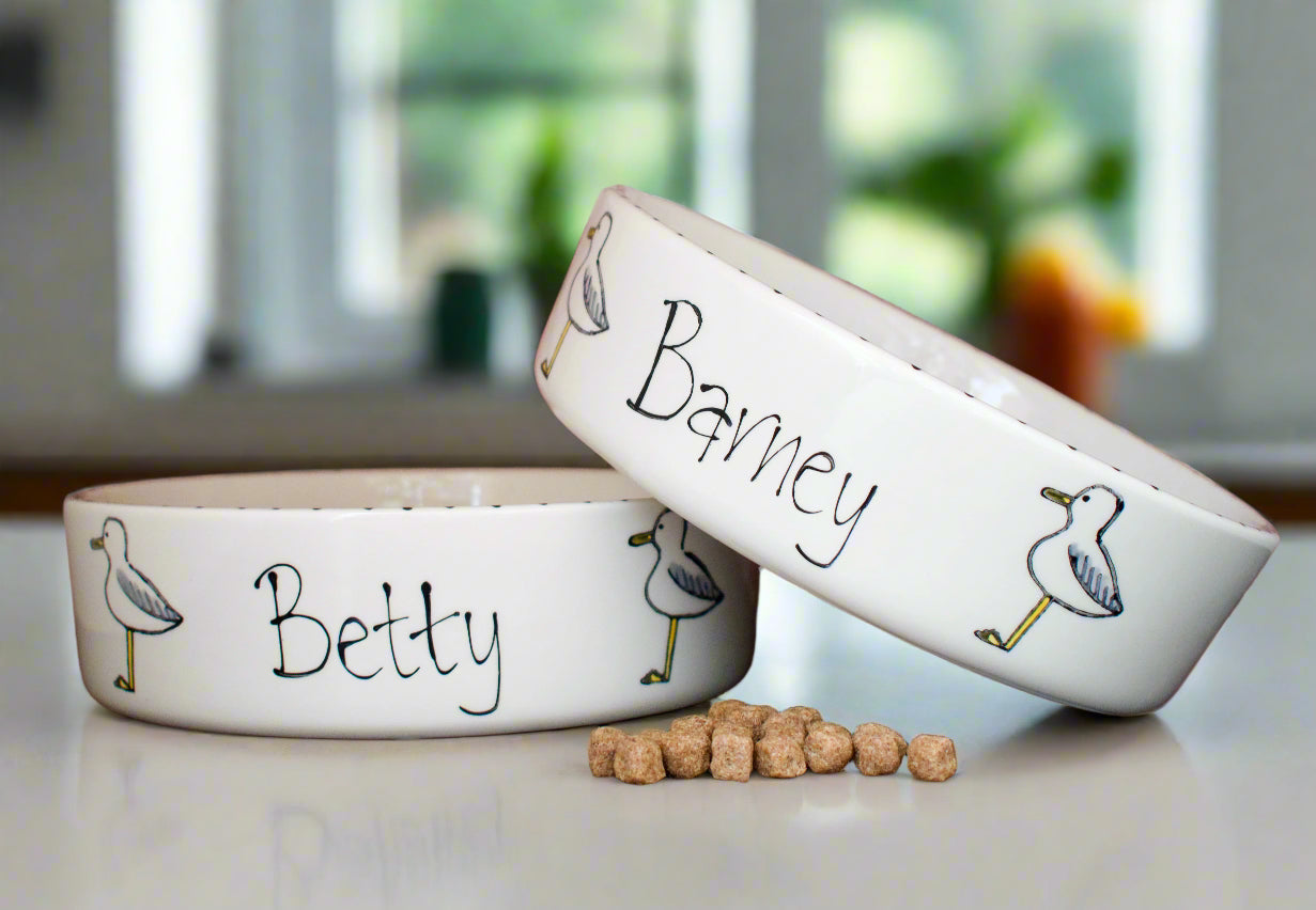 Each set is decorated with a cheerful seagull design that wraps all the way around. Hand painted and personalised to order, just for your furry friend, these bright and breezy bowls bring a splash of coastal charm (and a whole lot of joy) to your pet’s feeding spot.