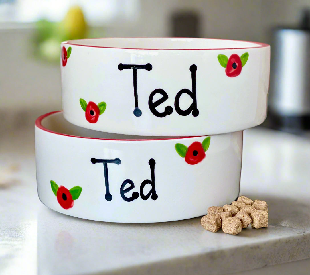 Each set features a striking hand-painted poppy design. Symbolising remembrance and resilience, each bowl is a little work of art—bold, vibrant, and full of meaning. Perfect for pet lovers who appreciate thoughtful design and timeless beauty.