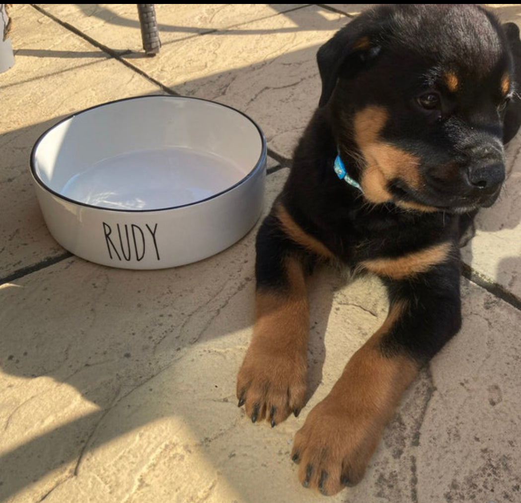 Available in three sizes with your pet’s name elegantly hand-painted in a skinny, stylish font. Choose a colour to match both the rim and the name, creating a beautiful, coordinated finish. Perfect for adding both artistry and personal flair to your pet’s daily routine.